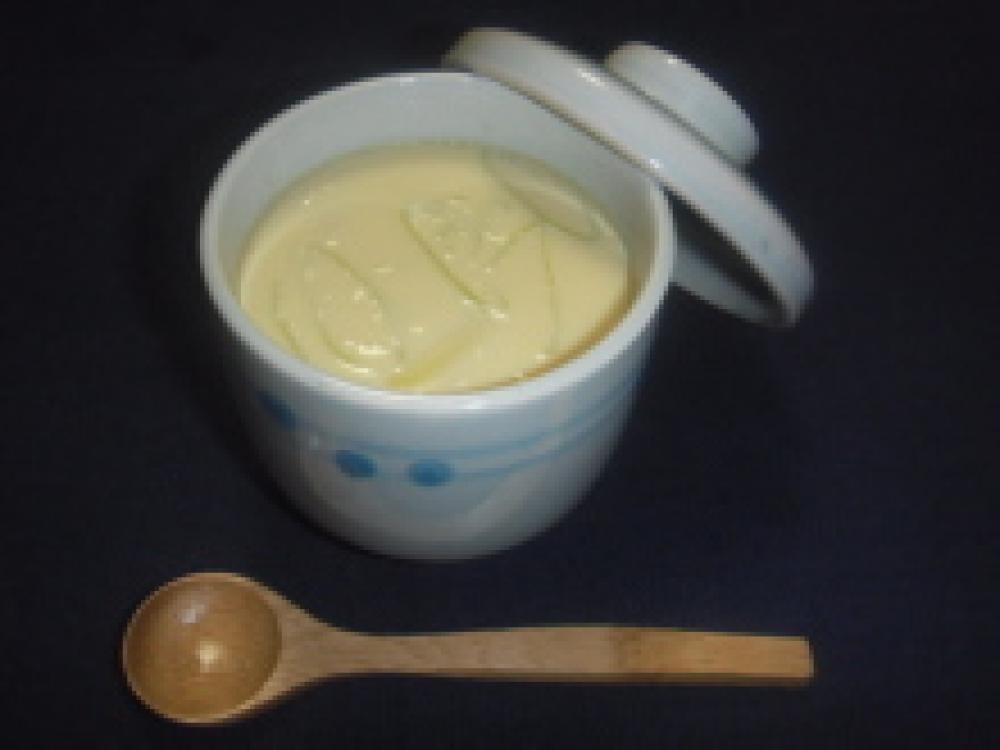 ②の出汁350ccと、塩、醤油、みりんを混ぜ、溶きほぐした卵に加え、混ぜる。