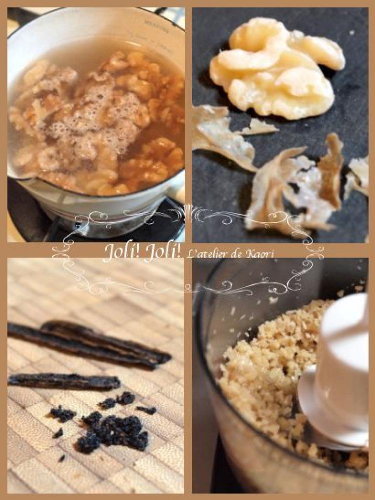 ![]() くるみをお湯で2~3分茹でて皮を剥き、FPで粗めに砕いておく。
