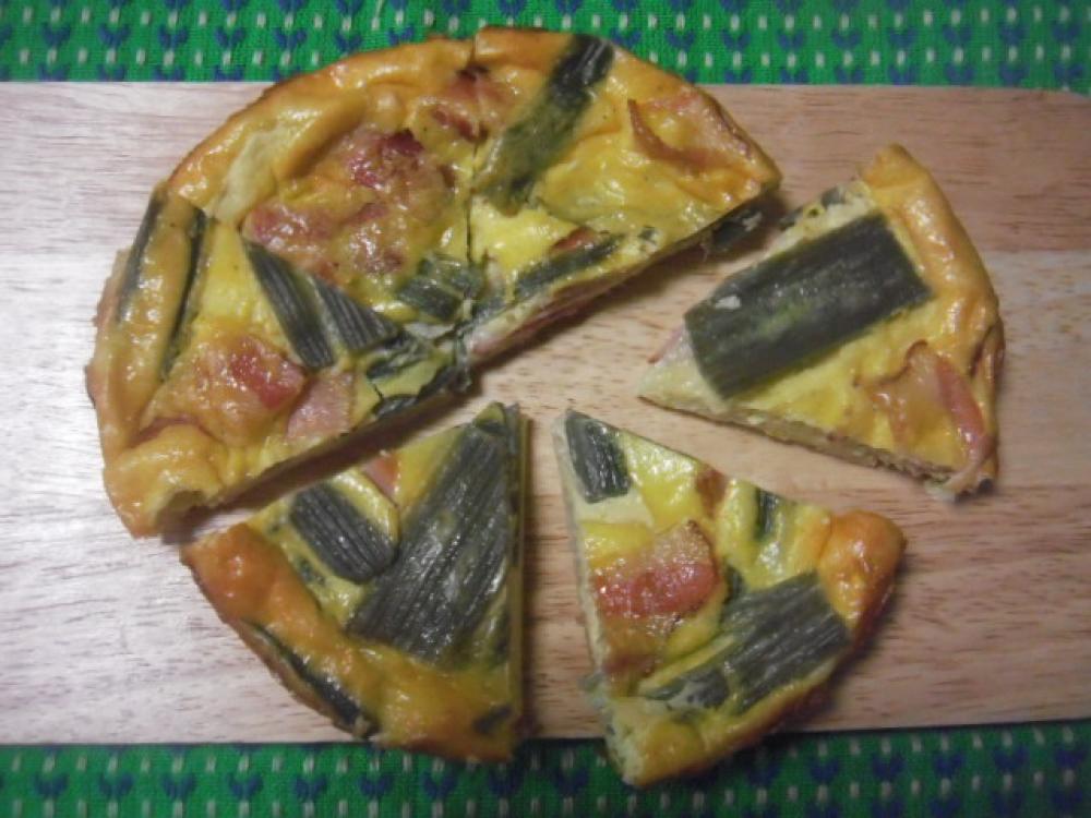 ボウルに卵を割り、牛乳、生クリーム、粉チーズ、ピザ用溶けるチーズを入れそこに②も加え混ぜる。味をみて塩コショウする。