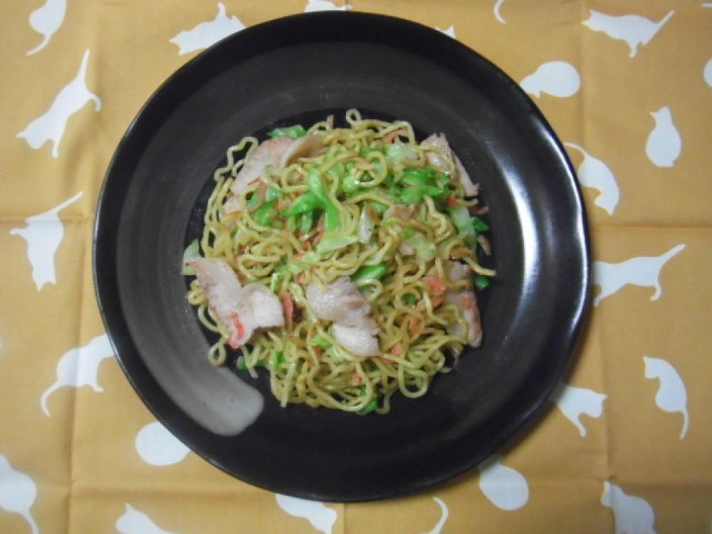 蒸し麺を軽くほぐし、分量外の油をしいたフライパンで、30秒くらいずつ置いて返して炒め焼きする。