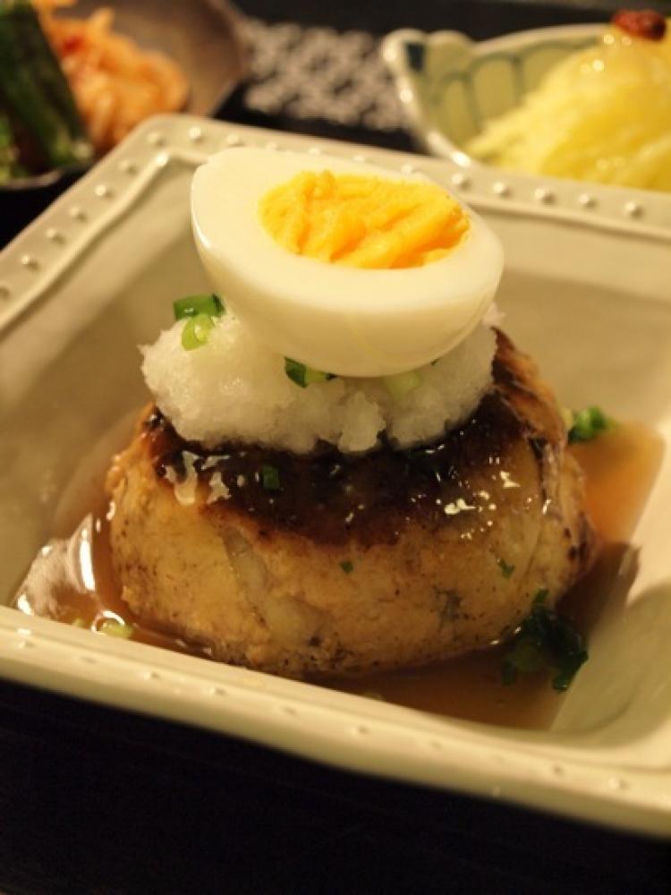 大根おろし、ゆでたまごを乗せて、鰹だしベースの餡をお好みでかけて完成。