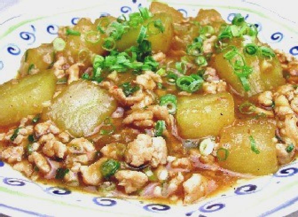 調味料を入れて、下ごしらえした冬瓜を入れ強火にする。