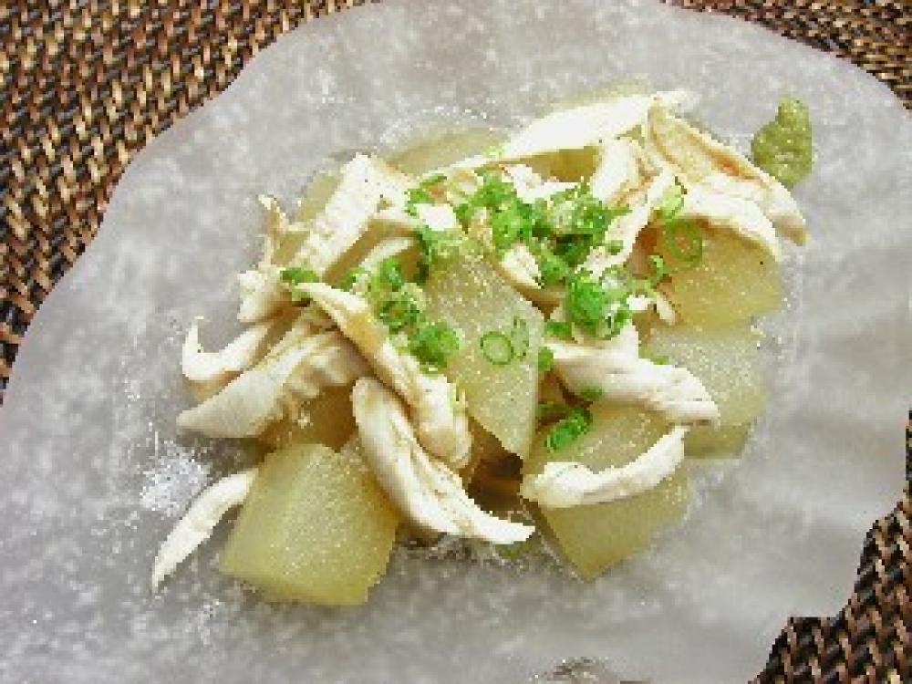 わさびを加えて混ぜ、冬瓜とささ身をあわせた物にかけて出来上がり。