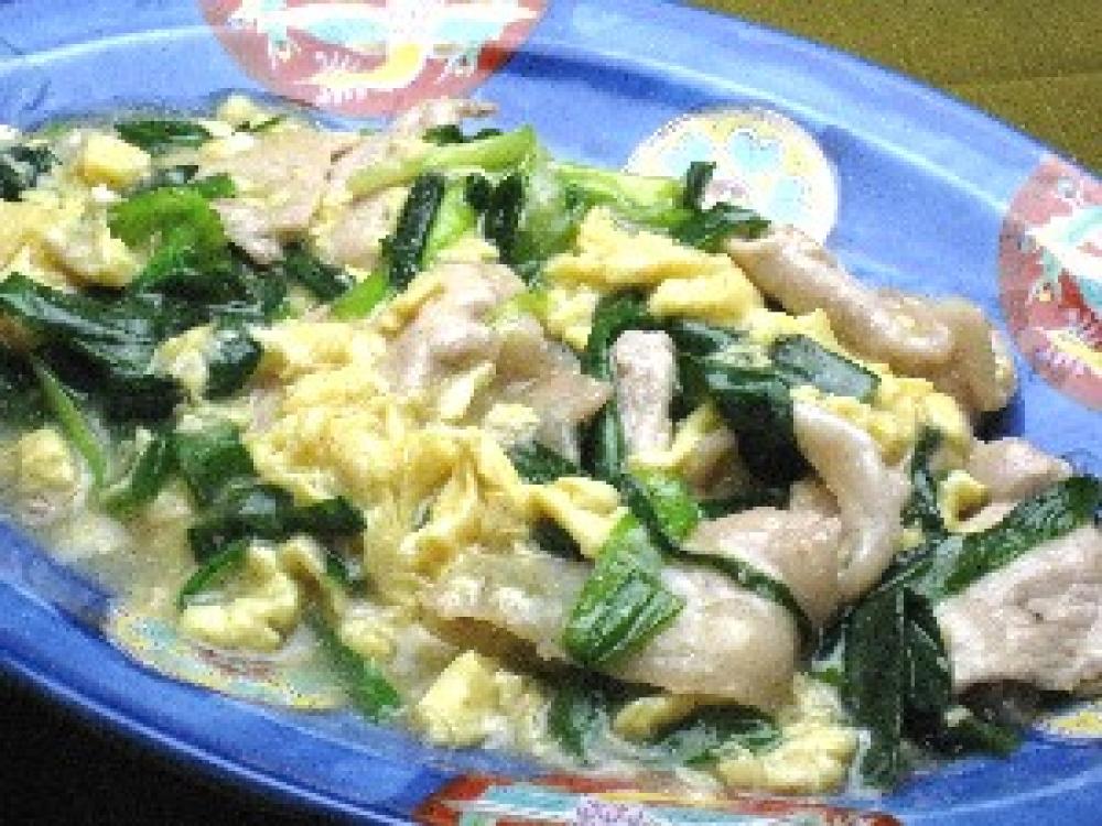 しんなりしたら、卵を戻し、合わせた餡の材料を全て加える。