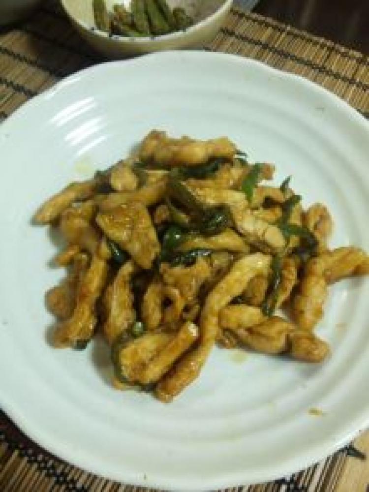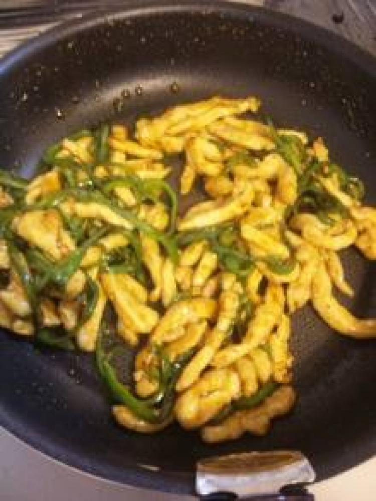 ![]() ピーマンも入れて火が通ったら☆を入れて炒めたら完成。