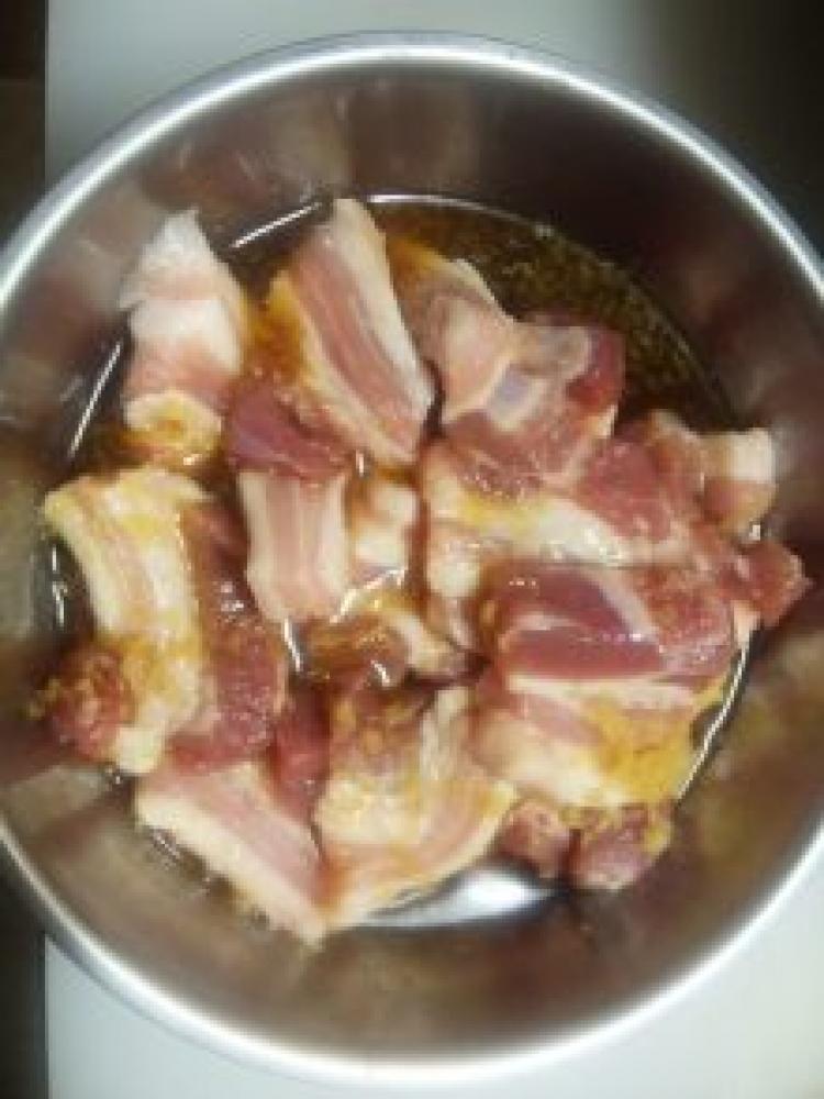 ![]() 豚バラブロックを1センチ幅に切りボウルなどに入れて☆を全て入れて漬け込んでおく。(20分~30分くらい)