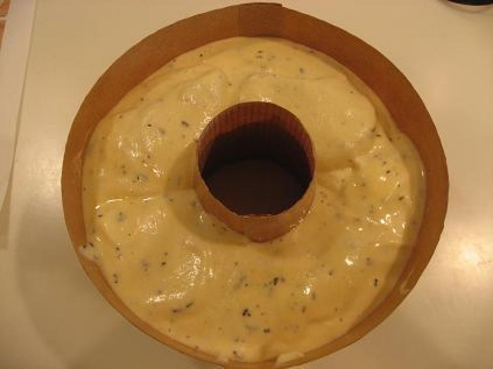 ![]() ふわふわ卵白と小麦粉類をまぜたら、いよいよ型に流し込み。