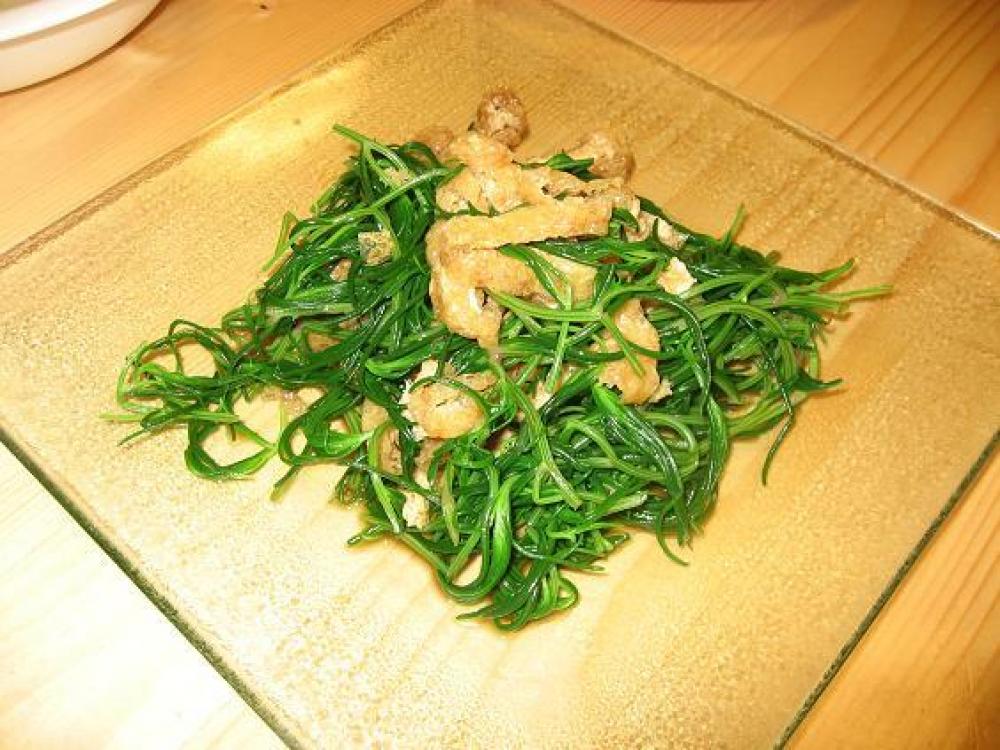 おかひじきは、さっとゆでてざるに上げる。