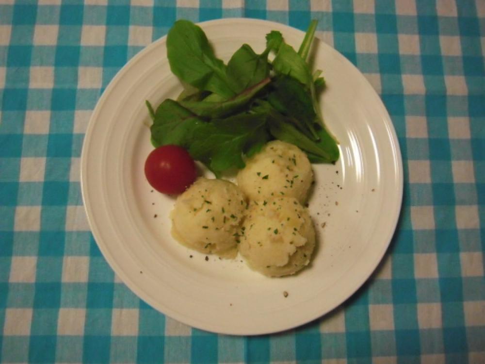 芋に竹串がスッとささるようになったら、熱いうちに皮をむいてつぶし、合わせておいたレモン汁、上白糖、塩コショウで下味付ける