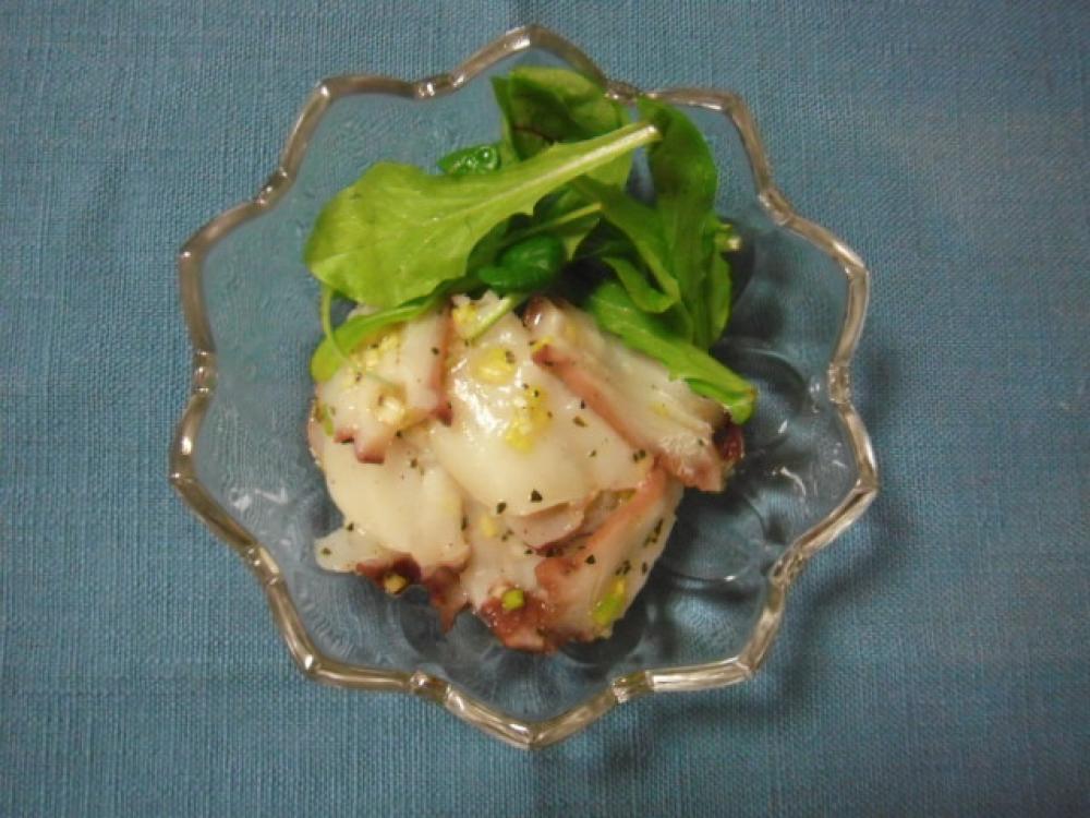 ①のタコと小口切りのネギ、ごま油、塩コショウ、ガーリックパウダー、バジルを合わせ混ぜる。