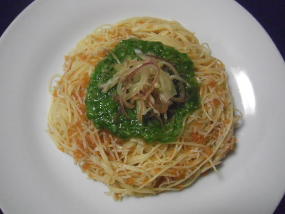 ①でカッペリーニを茹でる。茹で上がったら湯切りし、冷水で冷やし、水分をよくきる。