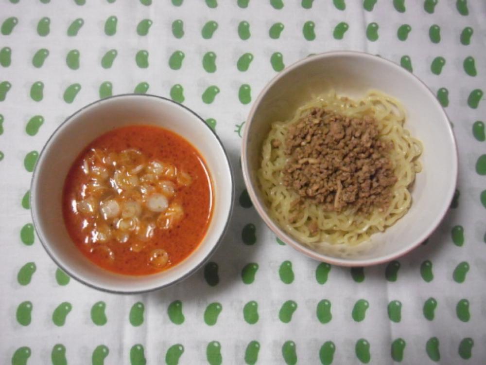 ②でスープをとって余ったひき肉は、ごま油をしいたフライパンで炒め、テンメンジャン、醤油で味付けし、つけ麺の具にする。