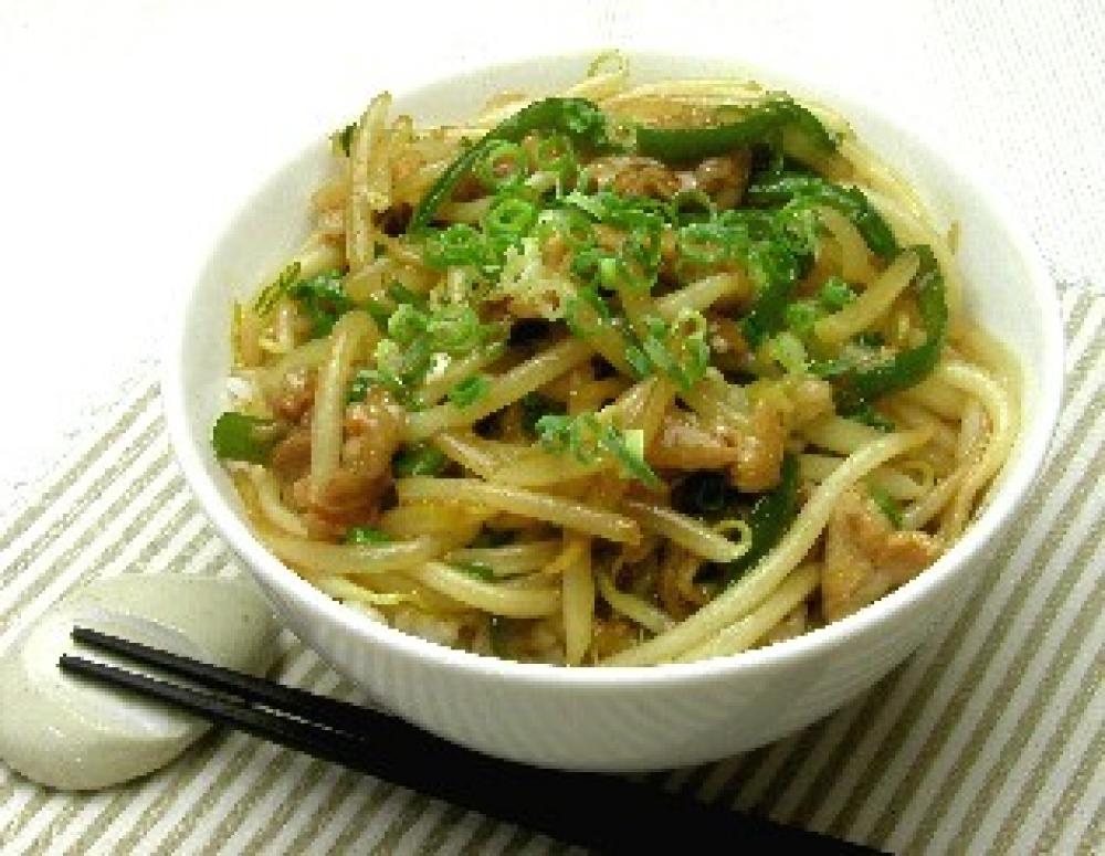 もやしは洗って水気をきる。ピーマンは細切り、ねぎは小口切りにする。