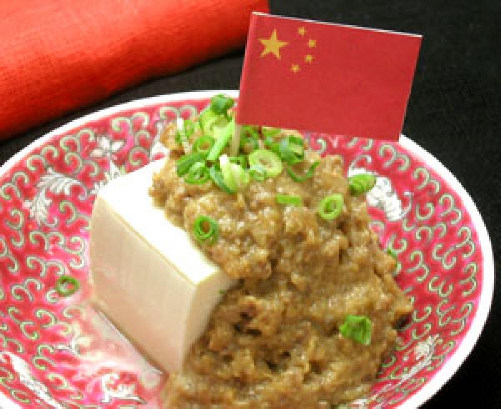豆腐に(8)とねぎをのせ出来上がり。