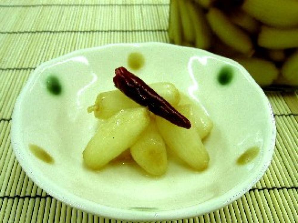 らっきょはきれいに洗って、薄皮をとって根と茎は切っておく。