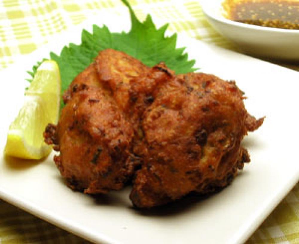 油を170℃くらいに熱し、(4)をスプーンですくって入れる。最初はさわらずに少し色がついてきたら裏返す。