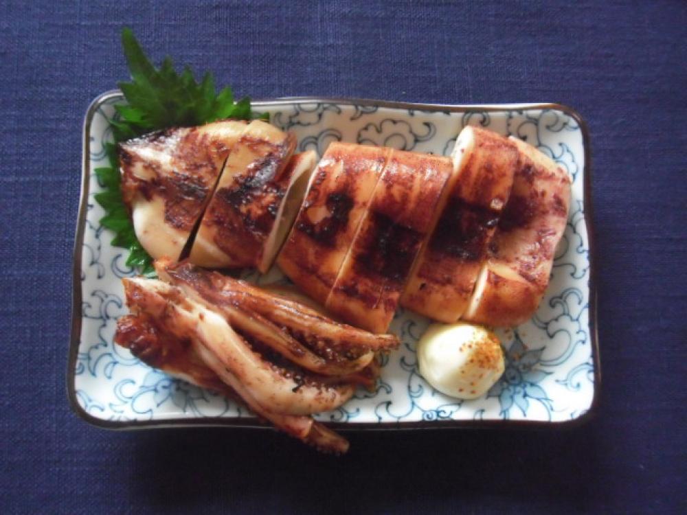 食べやすい大きさに切って青しその上に盛り付け、マヨネーズ、一味唐辛子をお好みで添える。