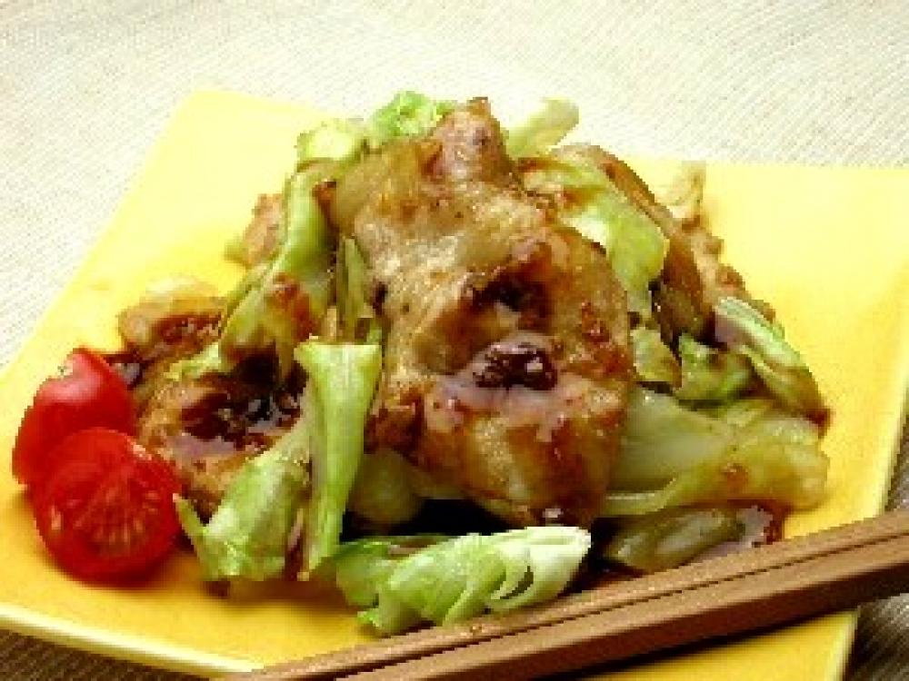 キャベツと豚肉を器に盛り付け、(4)をかけてできあがり。