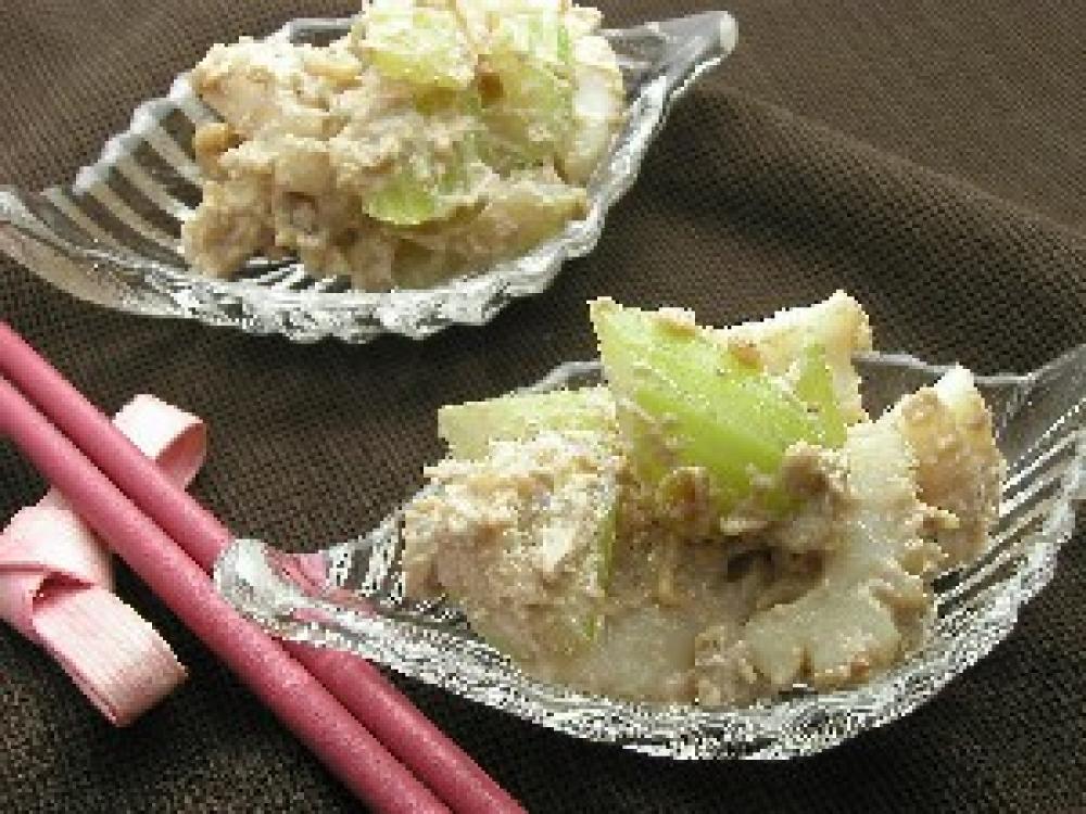 いかとセロリはたべやすく切り、それぞれさっとゆでる。