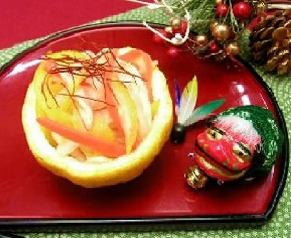 長ネギ、ショウガ、柚子の皮、赤唐辛子は千切りにする。