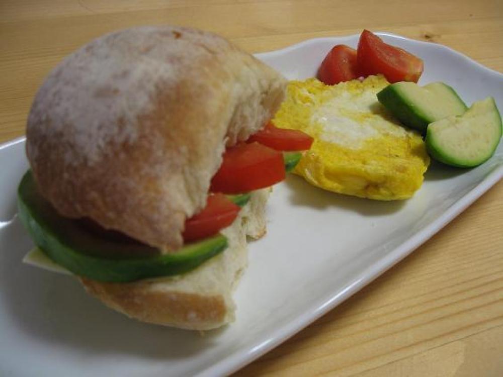 チーズをパンにひいて、アボガド、トマトを重ねてサンドします。