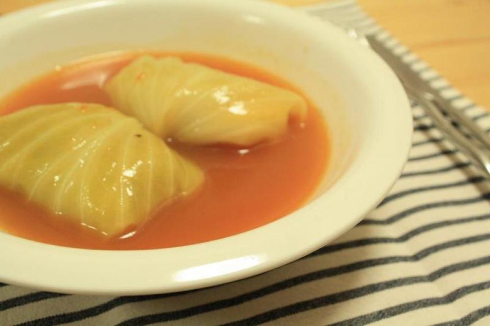 鍋にロールキャベツが半分までつかる位の水を入れて、コンソメトマトケチャップで味を付けて、火が通るまで煮て完成。