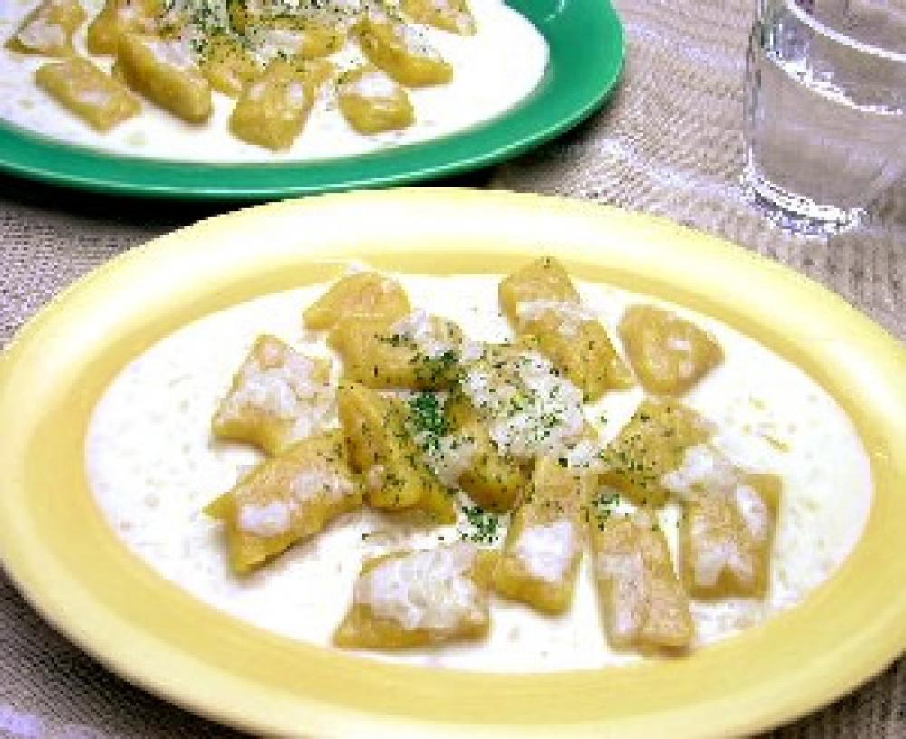 ゆで上がったニョッキを加えてからませ、上から刻みパセリをふりかけてできあがり。