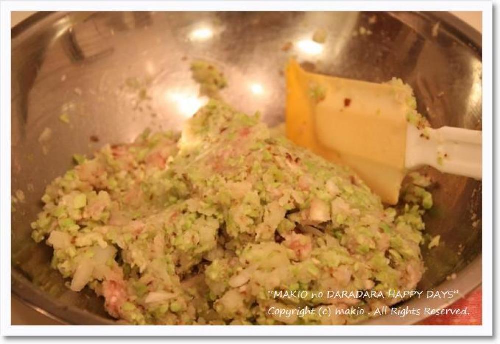シイタケと玉ねぎもみじん切りにします。