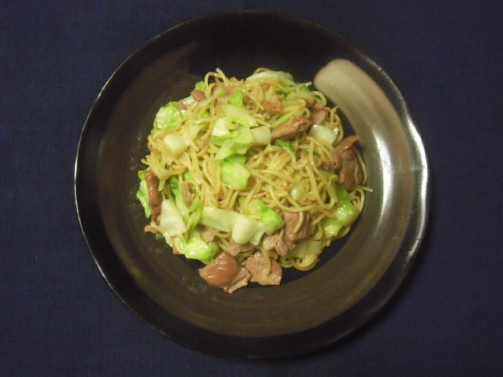 蒸し麺は酒、水をふりかけ、600wのレンジでラップをせずに30秒ほど加熱し、ほぐす。