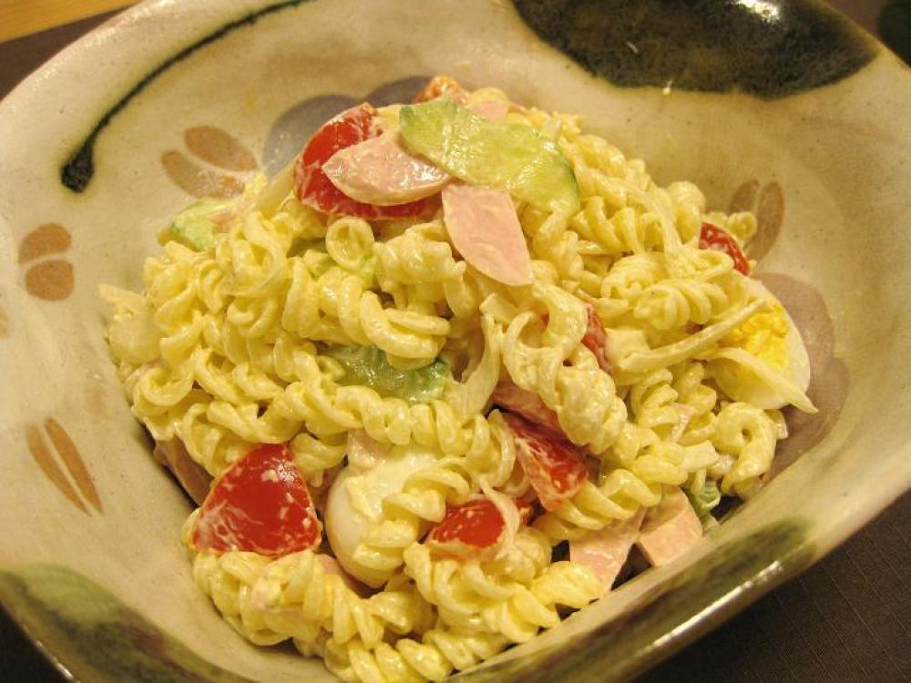 茹で上がったマカロニと切った具材をマヨネーズ(またはドレッシング)で和えて、塩、こしょうで味を整えて完成。