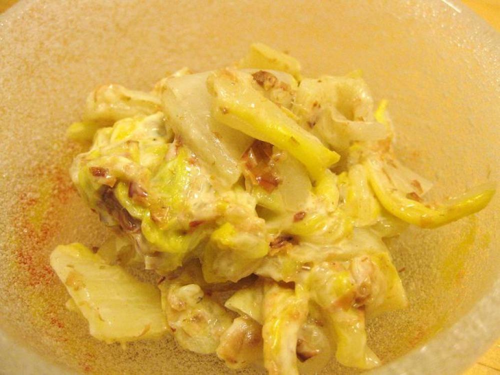 白菜を茹でて水気を絞って、食べやすい大きさに切ります。