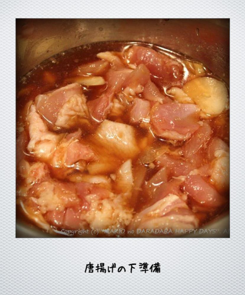 3に小麦粉を入れ、ダマにならないようにしっかり混ぜる。(鶏肉を持ち上げても、衣が落ちないくらいの硬さ)