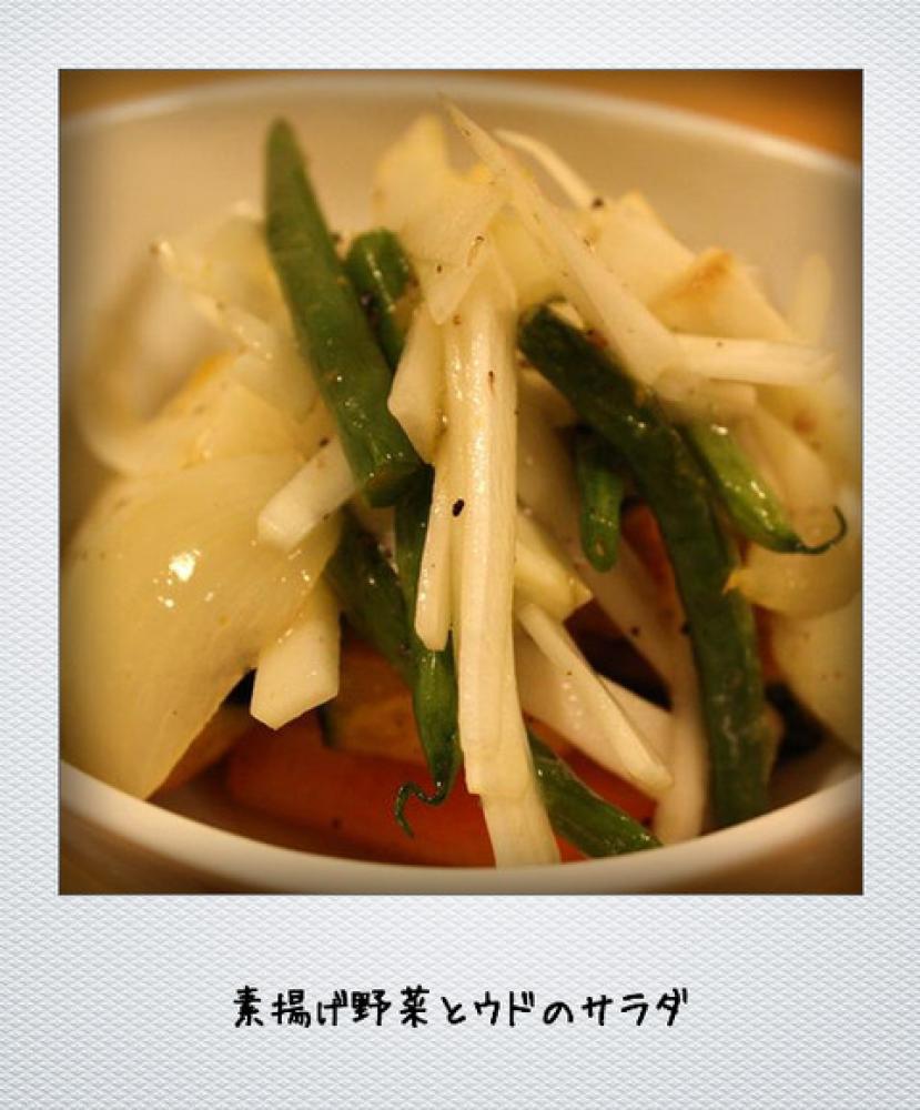 ウド以外の野菜を揚げる。