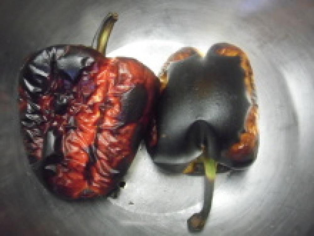 ![]() パプリカ(赤・黄)は、魚焼きグリルかオーブン(250℃くらいの高温)で、表面が黒く焦げるまで焼く。