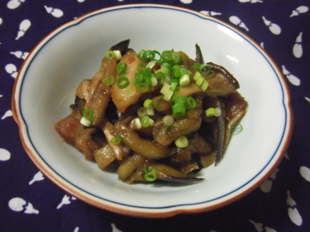 ④のフライパンの油で、ナス、エリンギを炒め、しんなりしてきたら④の豚バラ肉を加え、⑤のタレを入れ、絡めるように炒める。
