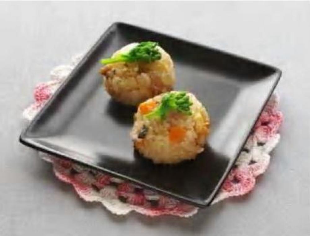 少し、米をつまんで熱くなっていたら、①のAの材料を加えて水気をしっかり吸わせる。