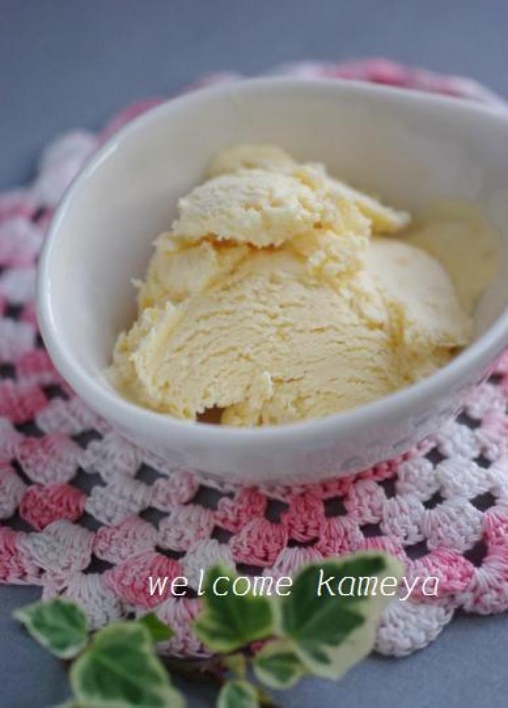 容器に入れて冷凍庫に入れて、8割固まったら全体を混ぜ、更に凍らせて出来上がり。