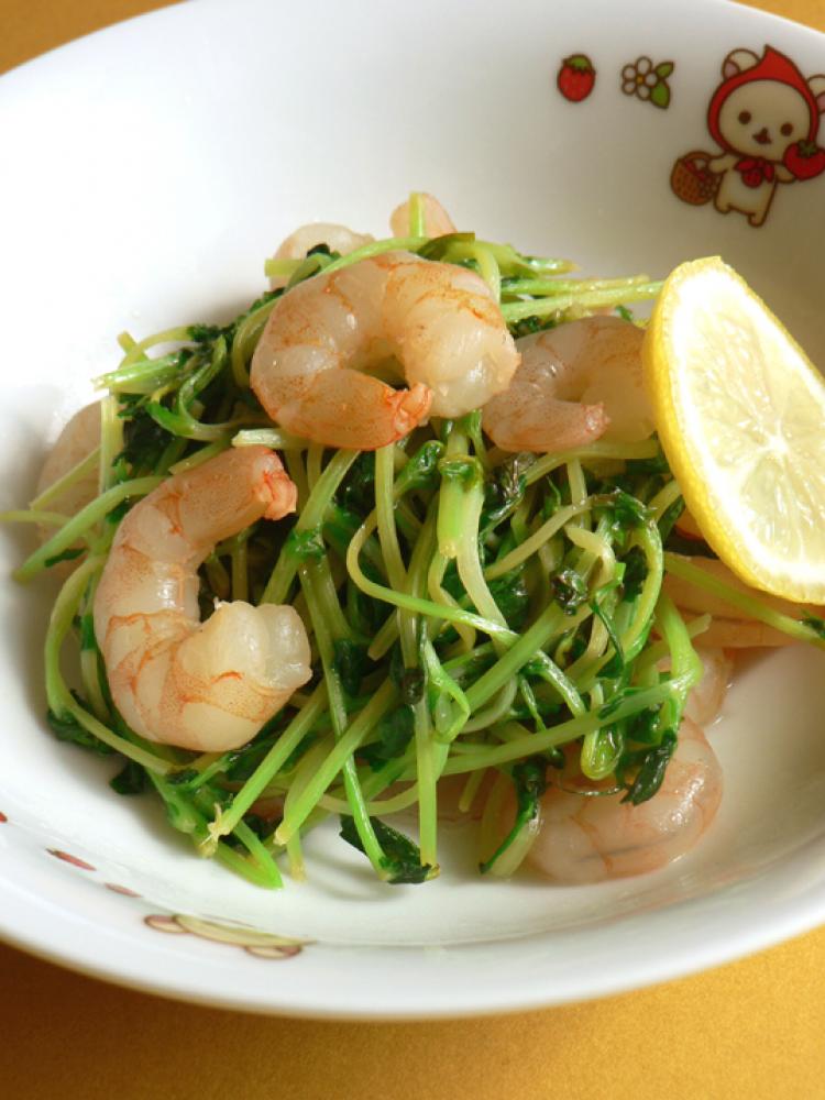 えびを追加、レモンひとふりと塩で味付けして完成!