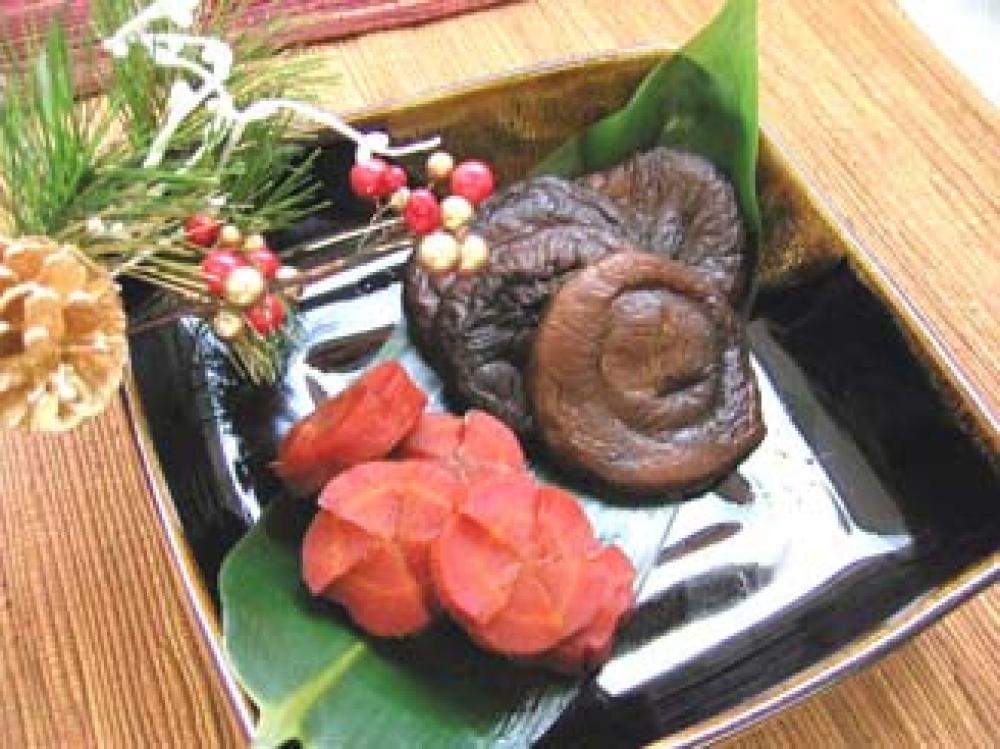 にんじんは梅型でくりぬき、ねじり梅にする。