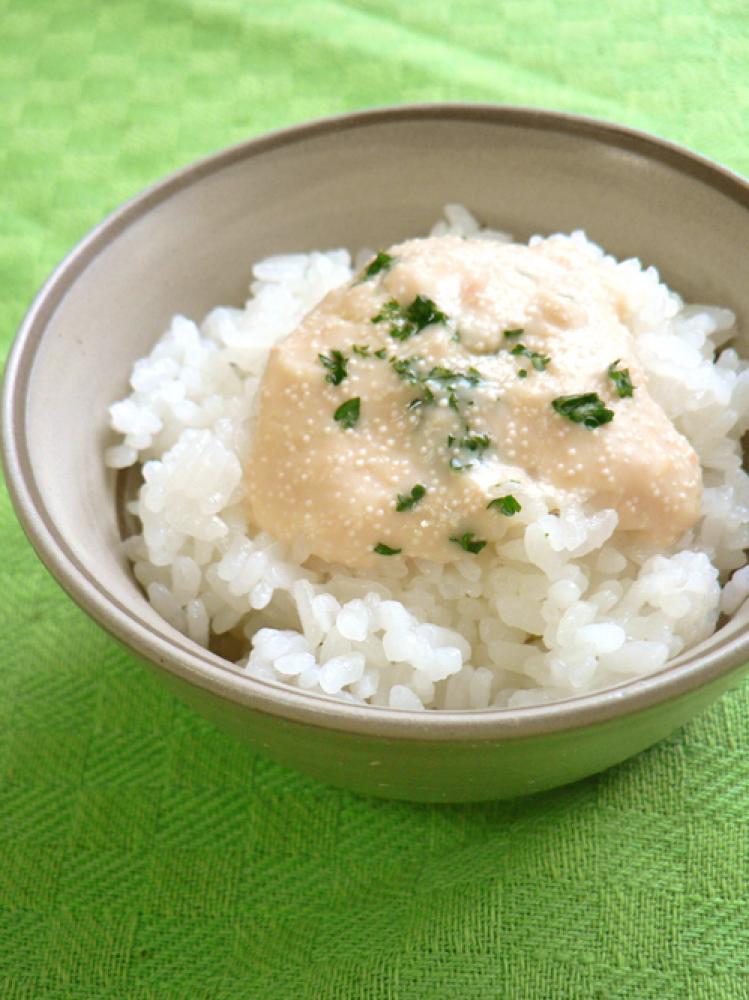 よく混ぜあわせてごはんにかけ、パセリを散らしたら完成!