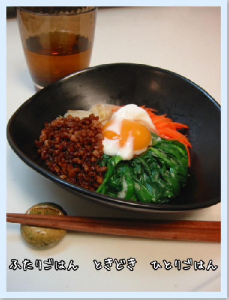 ごはんに①と②を盛り、仕上げにお好みで温泉卵をのせる。