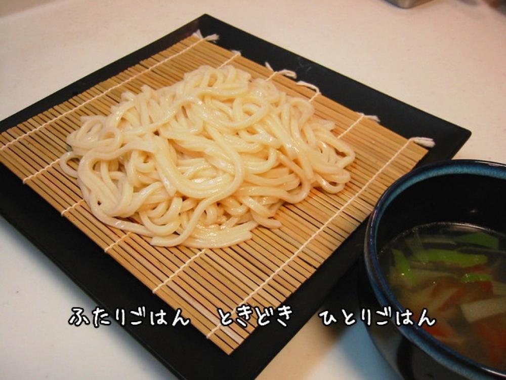 ![]() シメに…おだしを小鍋にとり、ネギと塩で味を濃いめに整える。アツアツおだしに、きりっと冷やしたうどんを用意して、つけ汁風に