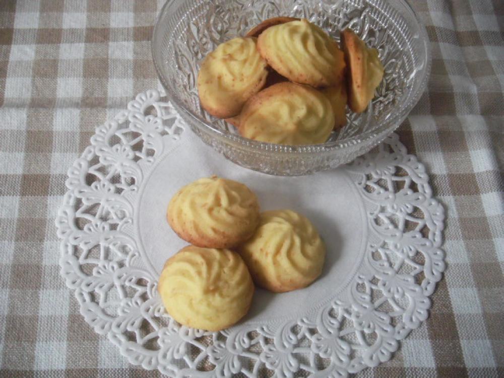 2がなめらかになったら、絞り袋に入れ、天板に間隔をあけて搾り出す。