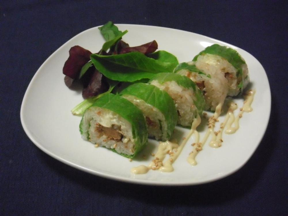 ![]() まき寿司を巻く要領で、まきすを丸める。