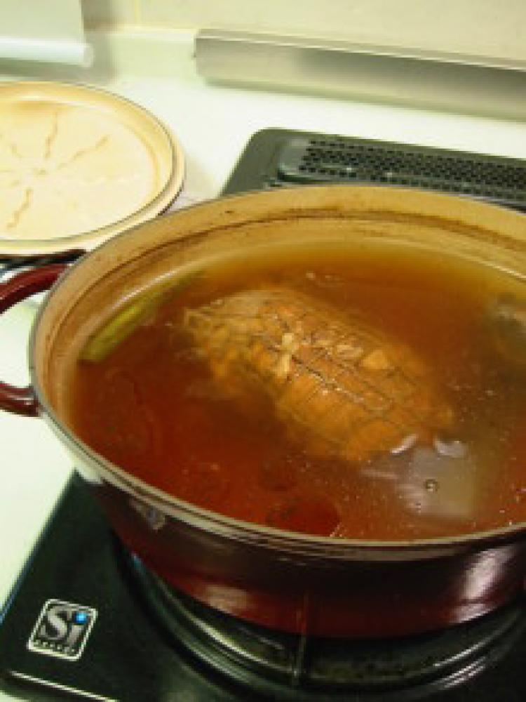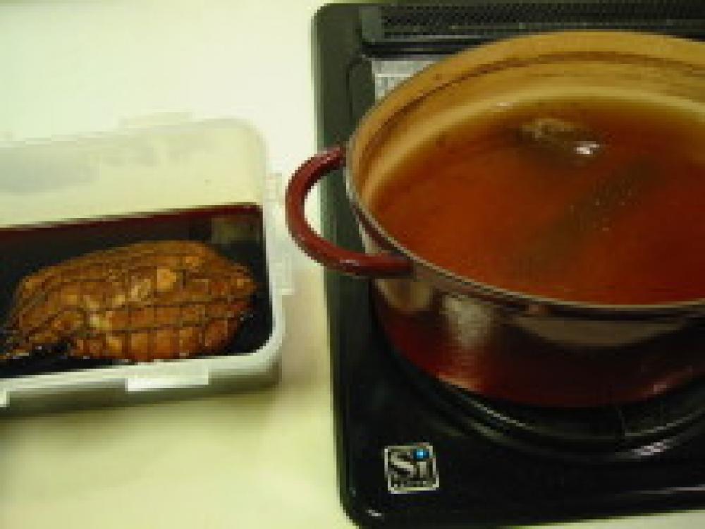 ![]() 鍋から肉を引き上げて、熱いうちにタレに4~5時間、できれば1晩漬け込む。
