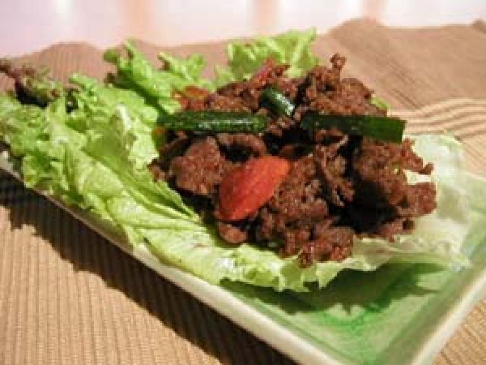 牛肉にラカントSをまぶして、よくもんで、しばらく置く。