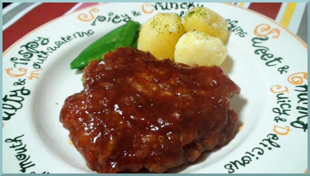 フライパンに(ケチャップ照り焼き調味料)を入れて、軽くお肉と絡めてお皿に盛り付けて完成!!