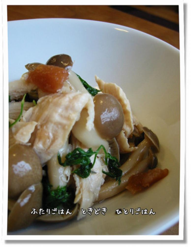 【下準備】梅干しをちぎったら、ボールに(A)の材料全てを合わせておく。