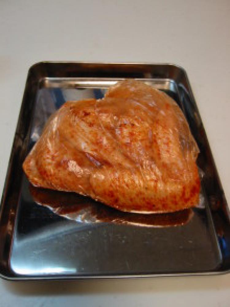 ![]() ビニール袋に(A)の材料を入れて混ぜ、フォークで穴をあけた肉を加えて1時間くらいなじませる。