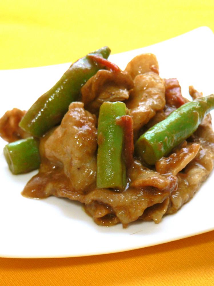 フライパンで豚バラを炒め、いんげんとトマトも追加。